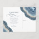 Tous les designs mariages ne sont pas égaux. L'agencement asymétrique des pièces de cet ensemble mariage frappant prouve que ce n'est pas une mauvaise chose ! Des bandes de couleur ondulées dans les tons allant du bleu poussiéreux au beige sablonneux avec un centre de cristal scintillant forment une géode/agate accent sur la plupart des pièces de l'ensemble. La carte postale mariage "Merci" présente les informations ci-dessus ainsi qu'un modèle pour ajouter votre message personnel, vos noms et votre date de mariage. L'inverse est constitué d'un arrière - plan abstrait de coordination qui rappelle la pierre veinée de parties scintillant. Recherchez ID647 pour voir toutes les pièces de coordination de cet ensemble.