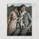 Une carte postale moderne enregistrez la date conçue pour accueillir votre photo fiançailles à fond à orientation verticale ou portrait préférée. "Enregistrer la date" est superposé sur le centre de votre photo en bloc blanc et en écriture de script, avec vos noms, date mariage et emplacement du mariage sous. Les cartes postales sont inversées pour afficher d'autres détails sur la date, y compris votre site Web mariage, avec votre adresse de retour et l'espace pour l'adresse du destinataire.