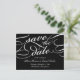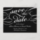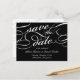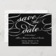 Élégant enregistrer les cartes postales de date en noir et blanc classique fonctionnalité embellisé script de calligraphie pour un look classique et formel. Personnalisez l'envers avec les détails de votre mariage, y compris les noms, la date, l'emplacement et des informations supplémentaires comme votre site Web mariage. Espace prévu pour votre adresse de retour pré-imprimée.