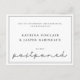 Typographie minimaliste, carte postale mariage reportée. La carte dispose d'élégant script de signature moderne "reporté", sur le devant. Plusieurs lignes de texte modèles pour les noms et les informations.