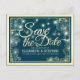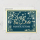 Carte Postale Faire-part Mariage Économisez La Date Chic Bleu Or Fleurs Cla