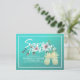 Modèles de Cartes Postales pour Mariage Économisez La Date - Couple Au Pineapple en Feuille d'Or Faux Élégant sur Fond de Papier Damassé Floral avec Roses Turquoise et Vert Sauge.
