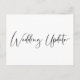 Si les circonstances vous obligent à réduire le nombre de participants à votre mariage, vous pouvez informer votre liste de personnes invitées avec cette carte de faire-part de mise à jour de mariage moderne et minimaliste, mais élégant, noir et blanc. "Mise à jour de mariage" est écrit dans un style calligraphique élégant sur le devant et vous pouvez facilement personnaliser le message de réduction de mariage avec plus de détails et ajouter toute information sur la cérémonie virtuelle, les célébrations futures et le site web du mariage au verso.