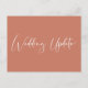 Si les circonstances vous obligent à réduire le nombre de participants à votre mariage, vous pouvez informer votre liste de personnes invitées avec cette carte de faire-part de mise à jour de mariage moderne et minimaliste, mais élégant. "Mise à jour de mariage" est écrit dans un script blanc élégant sur le fond orange-rouge foncé de l'avant. Au dos, vous pouvez facilement personnaliser le message de réduction de mariage avec plus de détails et ajouter toute information sur la cérémonie virtuelle, les célébrations futures et le site web du mariage au verso.