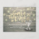 Enregistrez La Date Faire-part de mariage Carte Postale Modèles - Élégant Script, Lunettes de Champagne Vintage et lampes à cordes sur Arrière - plan de bois rustique. Un Design Parfait Pour Votre Grand Jour ! Tous Les Style De Texte, Couleurs, Tailles Peuvent Être Modifiés En Fonction De Vos Besoins.