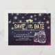 Mariage Enregistrer la date Carte Postale Modèles - Elegant Faux Gold Foil Enregistrer la date Lettering Script et Vintage Mason Jar String Lights sur Purple Sparkle Bokeh Lights Arrière - plan. Un design parfait pour votre grand jour. Tous les styles de texte, couleurs, tailles peuvent être modifiés selon vos besoins !