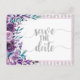 Carte Postale Faire-part Mariage Fleuris Violets & Argent Épargnez la Date