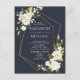 Carte Postale Faire-part Mariage floral blanc blanc bleu cuivré géométrique