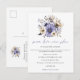 Lorsque vous devez replanifier votre mariage, cette carte postale pratique permet à vos invités de sauvegarder votre nouvelle date. Same Love New Plan est écrit dans un style manuscrit moderne en violet et le reste du texte au recto et au verso peut être aisément personnalisé. Un bouquet de magnifiques fleurs violettes et crème ainsi que de la verdure orne le haut de la carte et un motif floral coordonné figure également au verso, ainsi que l'adresse de votre site web de mariage et vos coordonnées pour les réponses.