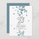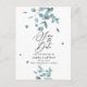 Le design présente des branches et des feuilles d'eucalyptus bleus et un type/police moderne. Vous pouvez facilement customiser la carte postale Enregistrer la date pour votre événement en ajoutant les détails de votre événement, le style de police, la taille et la couleur de la police et le libellé de votre choix en cliquant sur le bouton "Personnaliser".