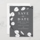 Elégant minimaliste eucalyptus feuilles sprig simple ligne art dessin noir avec feuilles blancs et ardoise gris mariage arrière - plan enregistrer la date. Script de typographie moderne personnalisé avec modèle facile à utiliser. Un mariage simple chic et élégant design de style verdure simple enregistrer l'invitation de date disponible imprimé et comme un téléchargement numérique. Feuillage botanique unique en gris ardoise, noir et blanc. oeuvre d'artiste unique Catherine Sweetman idéale pour un mariage de printemps, d'été, d'automne ou d'hiver.