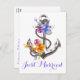 Carte Postale Faire-part Mariage nautique Ancre Violet Mariés Plage