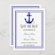 Un design marine à thème voile bleu et blanc avec un ancre bateaux enregistrer la conception de date pour les mariages blancs pour correspondre à votre suite de papeterie mariage et autres essentiels nuptiaux. Ce mariage moderne et élégant sauvez la date, facilement personnalisées avec les noms de mariée et de mariée au texte modèles pour créer votre propre coutume en liant le noeud enregistrer la date pour vos occasions spéciales de mariage, événements et célébrations. Visitez le MAGASIN PERSONNALISÉ_ MARIAGES pour obtenir des ensembles de mariages coordonnés. CUSTOMISEZ pour ajuster le texte et la police.