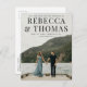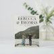 Cette photo moderne enregistrer la date carte postale annonce votre prochain mariage dans le style. Ce produit permet aux couples de présenter un portrait à fond saigné ou une photo verticale, de customiser leur nom et les détails de l'événement. Un texte supplémentaire se trouve à l'arrière qui vous permet d'ajouter des détails sur l'événement. C'est une façon amusante et économique d'envoyer enregistrer les dates et vous n'aurez même pas besoin d'une enveloppe.