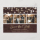 Personnalisé bois rustique et or photo mariage enregistrer les cartes postales de date avec une police de script élégante. Notre mariage sauf la date présente un montage photo de 3 images contre un arrière - plan rustique en bois orné de lampes à cordes. Personnalisez facilement cette photo rustique enregistrez la carte postale de la date avec vos images et les détails du mariage, y compris un site Web mariage, si vous le souhaitez. Pour des demandes personnalisées, envoyez-nous un message.
