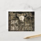 Rustique crâne de vache mariage occidental avec cornes style vintage enregistrer la date annonce carte postale. Ranch grunge texture. Le cow-boy en bois de grange s'est inspiré. Art antique sepia brun bison. Image copyright Marg Seregelyi Photographie.