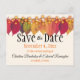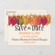 Envoyez le faire-part "Save The Date" pour votre date de mariage d'automne avec une bordure supérieure de feuilles d'automne colorées et des feux de lucioles sur une corde. Personnalisez le texte avant et arrière dans les champs modèle ou cliquez sur customiser pour sélectionner le style, la taille et la couleur que vous préférez.