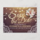 Enregistrez La Date Faire-part de mariage Carte Postale Modèles - Faux Gold Foil Script Elégant Fleur et String Lights avec Dentelles décorations sur Arrière - plan de bois rustique. Tous Les Style De Texte, Couleurs, Tailles Peuvent Être Modifiés En Fonction De Vos Besoins.