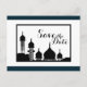 Ces mosquées islamiques Silhouette, Mariage Enregistrer la date Les cartes postales sont parfaites pour tout couple qui planifie une célébration mariage moderne. Le design islamique peut être personnalisé pour votre événement spécial et sera le faire-part parfait pour toute fête à thème arabe, y compris : douches nuptiales, fiançailles, wedding showers, fêtes d'anniversaire et bien plus encore.