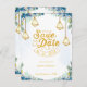 Carte Postale Faire-part Mariage tendance bleu jaune floral avec lanternes