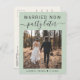 Carte Postale Faire-part Mariés Maintenant, Fête Plus Tard Photo Vert Sauge