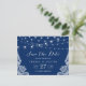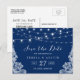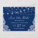 Navy Blue String Lights Elegant Lace Enregistrer la date Carte postale. (1) Pour plus de personnalisation, cliquez sur le lien "customiser plus loin" et utilisez notre outil de conception pour modifier ce modèle. (2) Si vous avez besoin d'aide ou d'articles correspondants, veuillez me contacter.
