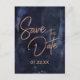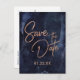 Carte Postale Faire-part Marine Blue & Rose Gold Wedding Enregistrer la dat