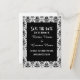Joli modèle moderne blanc et noir rétro vintage damask motif, élégant élégant mariage traditionnel élégant enregistrer la date, facilement personnaliser les noms de mariée et mariée aux modèles pour créer une coutume unique en attachant le noeud enregistrer la date pour vos occasions spéciales de mariage et de célébrations. Visitez le MAGASIN PERSONNALISÉ_ MARIAGES pour obtenir des ensembles de mariages coordonnés. CUSTOMISEZ pour ajuster le texte et la police.
