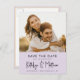 Carte de notification de mariage minimaliste avec photo moderne et écriture amusante mauve violet. Faites savoir à votre famille, vos amis et vos collègues que vous avez fixé une date pour votre célébration de mariage avec cette carte d'invitation de mariage élégante, stylée et moderne. Tous les textes sont pré-arrangés pour que vous puissiez les personnaliser facilement et rapidement avec vos propres détails.