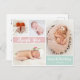 Cartes postales de collection de photos de Merci moderne, rose et turquoise. Elégant, mignon faire-part de naissance photo avec quatre (4) de vos photos préférées avec un joli script écrit à la main en blanc sur des blocs de couleur pastel rose doux et aqua ou turquoise turquoise. Ajoutez le nom de votre bébé, le message de remerciement et les statistiques de naissance. Facile à personnaliser.