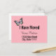 Un beau papillon vole sur cette carte de faire-part rose qui dit "J'ai bougé". Vous pouvez modifier le texte pour afficher votre nom et votre nouvelle adresse.