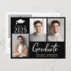 Carte postale moderne noire de graduation avec 3 photos et "Graduate" dans un script blanc contemporain en gras. Ajoutez le nom du diplômé, l'année de classe et le lycée ou l'université en simple typographie blanche.