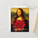 Carte Postale Faire-part Mona Lisa avec bouquet de roses rouges