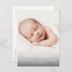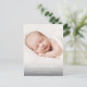 Un faire-part de naissance photo à budget doux avec un nom moderne et une photo de portrait vertical à fond saigné. Le dos a un endroit photo supplémentaire un en-tête grand nom complet et message personnel de la famille.