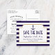 Cartes Postales de Faire Part de Date de Mariage avec Thème Nautilus Navy & White Stripe Anchor