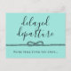 Vous avez changé la date de votre mariage ? Faites-le savoir à vos invités avec cette carte postale turquoise avec « départ retardé » écrit en script fin au-dessus d'une corde nouée en symbole de l'infini. Ajoutez vos nouvelles informations de mariage de l'autre côté.