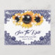 Carte Postale Faire-part Navy Blue Sunflower Lace Wedding Save The Date