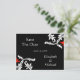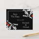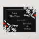 Carte Postale Faire-part Noir avec blanc, Rouge Mariage damassé Enregistrer