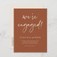 Nous sommes fiancés ! Annoncez votre fiançailles à votre famille et à vos amis avec cette carte postale personnalisable de fiançailles photo faire-part. Il comprend la calligraphie moderne et la typographie simple. Cette carte postale de fiançailles photo en terre cuite est disponible en d'autres couleurs. Personnalisez en ajoutant vos photos, noms et autres détails.