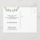 Pour les cas où les circonstances signifient que malheureusement, il est devenu nécessaire pour vous de changer la date de votre mariage, un moyen pratique de faire savoir à vos invités votre changement de plans et la nouvelle date dès que possible. Ce design élégant comporte une seule feuille de eucalyptus verte élégante en haut, avec une typographie "Nouveaux plans" dans un script moderne, au-dessus du texte avec votre message que vous pouvez facilement personnaliser ainsi que les mots au dos qui comprennent votre site web de mariage et les coordonnées de retour.