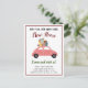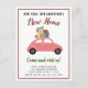 Nouvel An Nouvelles Aventures Nouvel An Accueil Noël Rose Voiture Moving Faire-part Carte postale avec la frontière rouge.