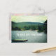 Cartes postales d'annonce de nouvelle adresse de maison de lac. Un lac de campagne isolé avec une petite plage et des collines vertes est la photo sur le devant de cette carte postale d'annonce de déménagement. Sur le devant, le texte « notre nouvelle adresse » peut être modifié et ajouter toutes les informations au verso.