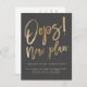 Oups ! Nouveau plan, Mariage moderne et amusant avec une écriture manuscrite de style typographique, faux or sur fond gris foncé, avec simplicité et minimalisme pour annoncer le report de votre mariage et de nouveaux plans