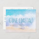 Cette belle carte postale avec une image aquarelle d'une vague se brisant sur une plage sablonneuse, un ciel ensoleillé, un océan bleu et turquoise, et les mots "Gone Coastal" serait parfaite pour envoyer à vos amis et à votre famille lorsque vous déménagez dans une nouvelle maison dans une zone côtière. La plage pourrait être n'importe où dans le monde ! Procurez-en suffisamment pour que tous ceux que vous connaissez et que vous aimez aient votre nouvelle adresse et votre nouveau numéro de téléphone. Ils seront ravis de votre grand déménagement !