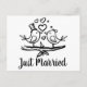 L'amour est dans l'air ! Annoncez fièrement à vos amis et à votre famille que vous et votre chéri(e) venez de vous marier avec cette mignonne carte postale de mariage noir et blanc aux tourtereaux. Faire-part de mariage "Amoureux des oiseaux" pour votre mariage moderne, élégant, tendance, été, hiver ou décontracté.