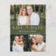 Annoncez votre date mariage avec cette photo moderne et élégante enregistrez la carte postale date. Le design comporte trois de vos photos fiançailles préférées avec "Save the Date" affiché en serif blanc et polices de caractères contre un arrière - plan vert olive. Personnalisez l'avant du minimaliste enregistrez les annonces de date en ajoutant vos noms, date et emplacement mariage. L'enregistrement de la date de la carte postale inverse pour afficher votre adresse de retour et les détails du mariage. Le simple enregistrement de la date annonce est parfait pour n'importe quel thème mariage.
