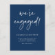 Nous sommes fiancés ! Annoncez votre fiançailles à votre famille et à vos amis avec cette carte postale personnalisable de fiançailles photo faire-part. Il comprend la calligraphie moderne et la typographie simple. Cette carte postale fiançailles bleu marine est disponible en d'autres couleurs. Personnalisez en ajoutant vos photos, noms et autres détails.
