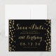 21e modèle de conception de carte "Save The Date" pour fête d'anniversaire avec texte personnalisable Or Paillettes Faux Confettis Noir et nom personnalisé et date. Entièrement personnalisable !