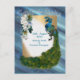 Carte Postale Faire-part Or, 2 paons, plumes sur soie vert émeraude