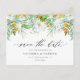 Enregistrez la date ! Annoncez la date de votre mariage à votre famille et à vos amis avec cette carte postale d'enregistrement de la date avec des orchidées. Elle comporte une guirlande florale à l'aquarelle d'orchidées blanches, de kumquats et de verdure avec un script fantaisiste. Personnalisez en ajoutant les noms, la date, le lieu et d'autres détails. Ces cartes d'enregistrement de la date aux agrumes et aux fleurs sont parfaites pour les mariages d'été.